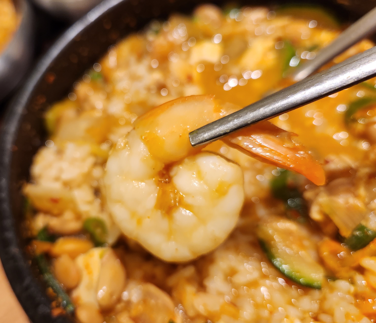 이렇게 밥을 비벼서 한입 해보면, 처음 맡았던 냄새와는 다른 맛이 나는데요
