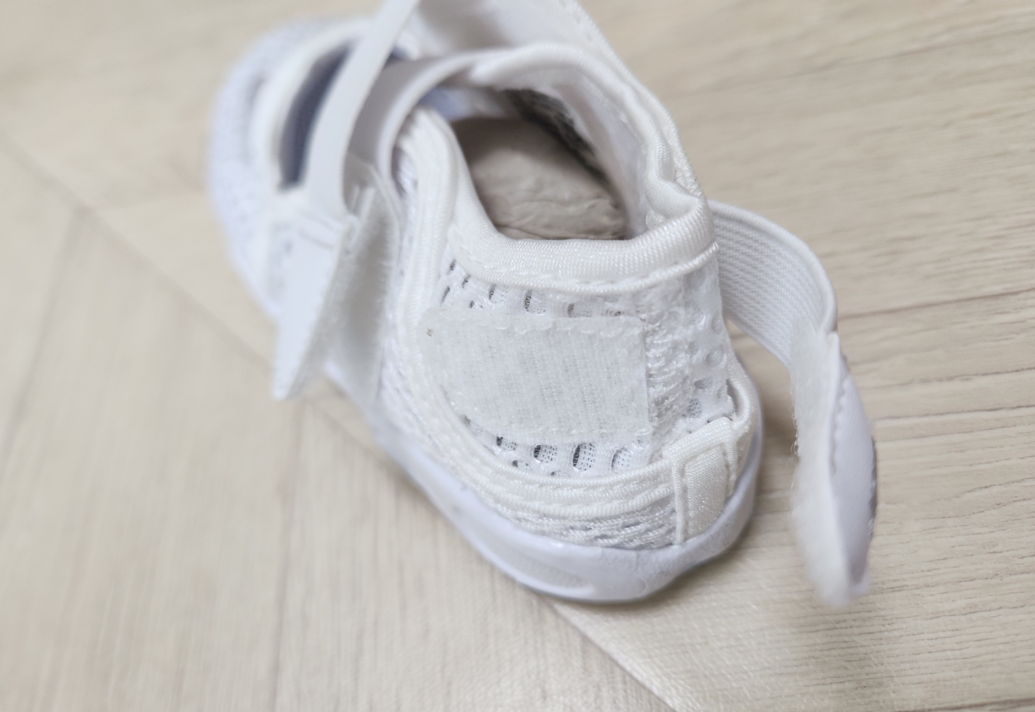 이 신발의 장점은 가볍고 시원하고 찍찍이가 밴드형식으로 되어있어서 발등이나 발볼이 큰 아기들도 편하게 신을 수 있다는 점인데요