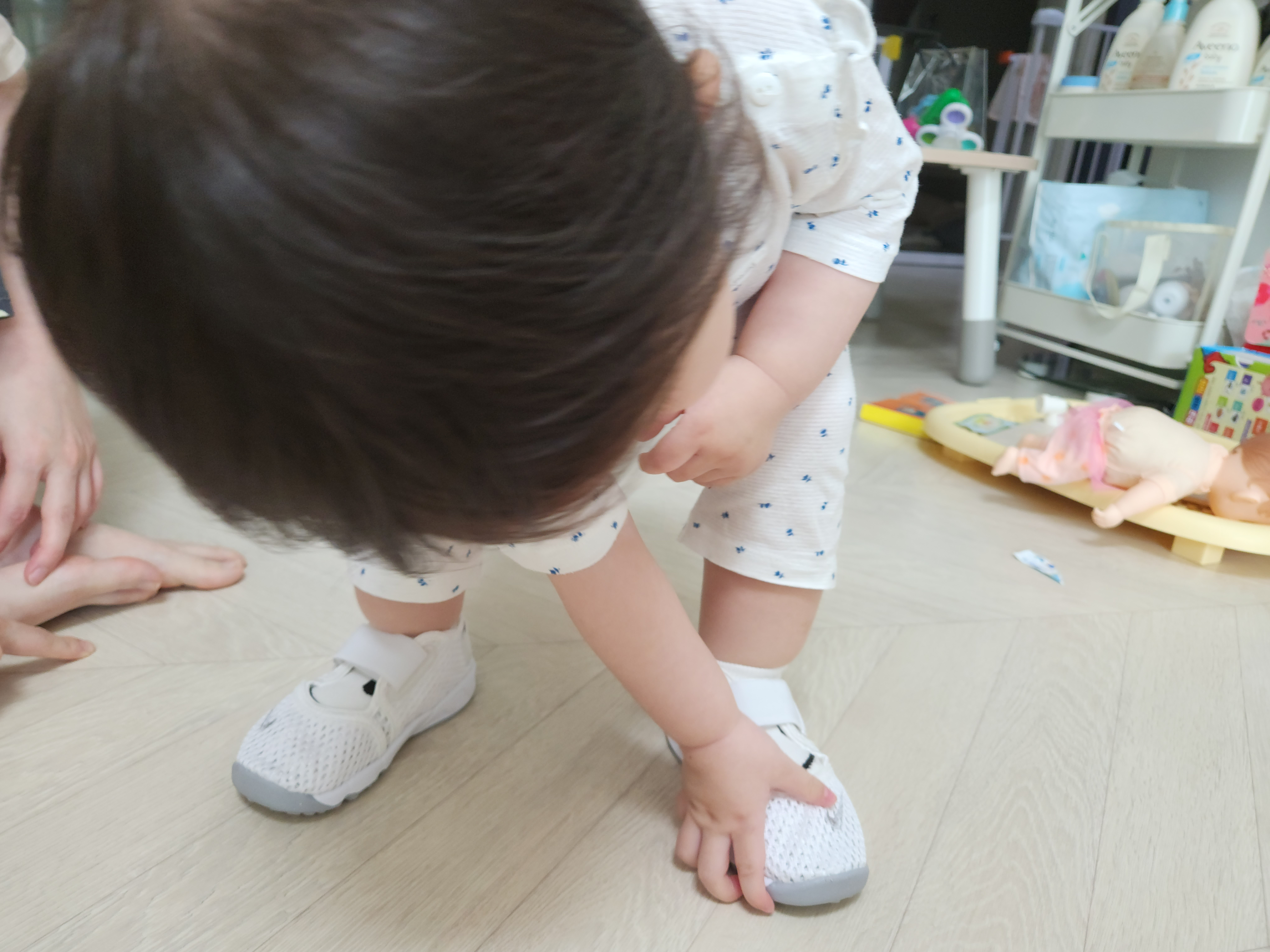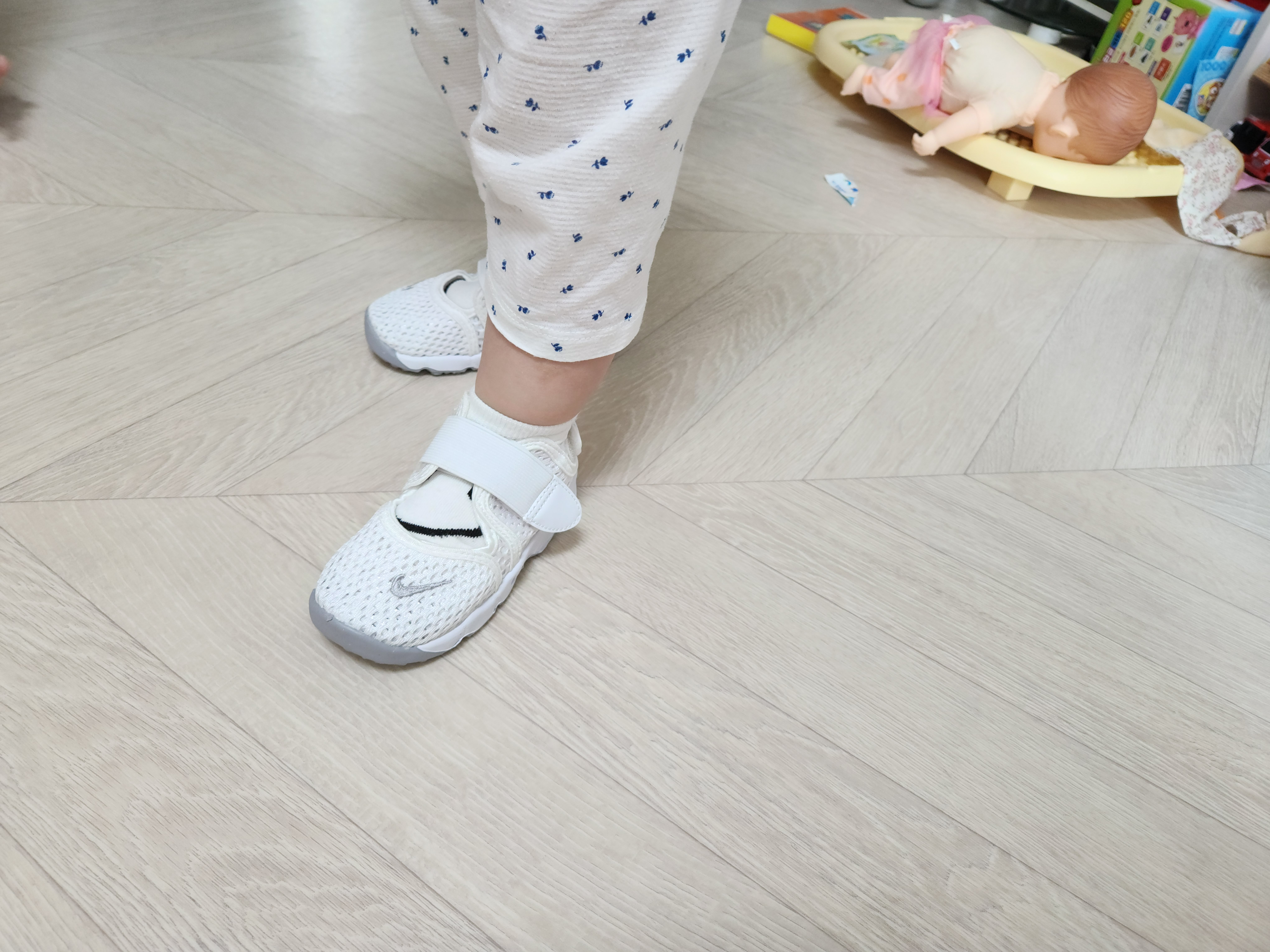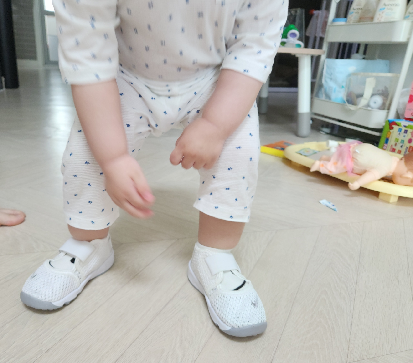 디자인도 무난해서 어느 옷을 입어도 편하게 신을 수 있다고 생각이 들고, 아직 아기가 어리기 때문에 크록스 보다는 전체적으로 잘 잡아는 운동화가 아기에게 더 편할 것 같다는 생각 들었는데 잘 구매한 것 같아요